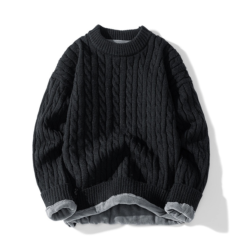 ragazzo ragazzo ragazzo con fodera in pile, nuova maglia base autunnale e invernale, maglione lavorato a maglia con trecce intrecciate a scollo rotondo, maglione lavorato a maglia da uomo
