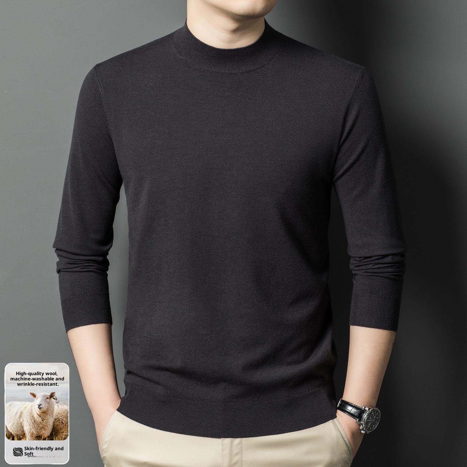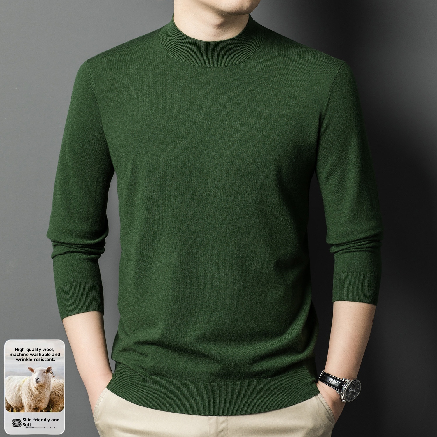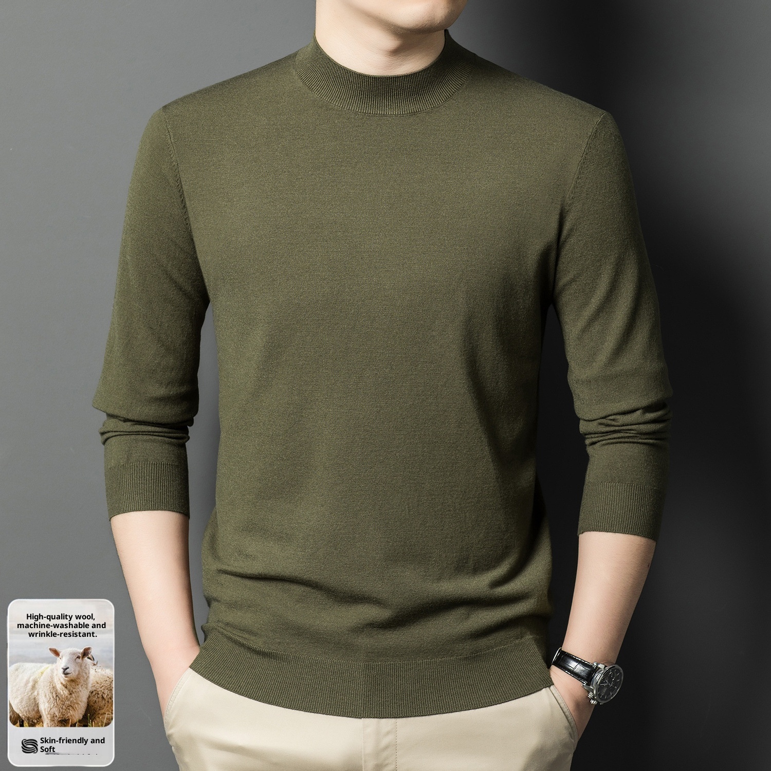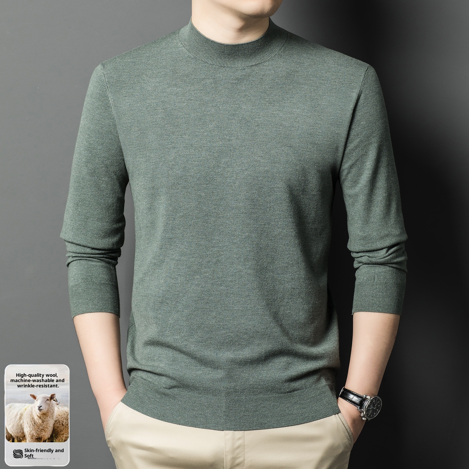 ragazzo Ragazzo Ragazzo Maglia fine a maniche lunghe in lana da uomo, ispessita e calda per autunno e inverno, mezza dolcevita, camicia di base in tinta unita, interno