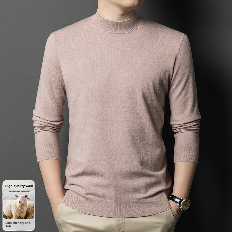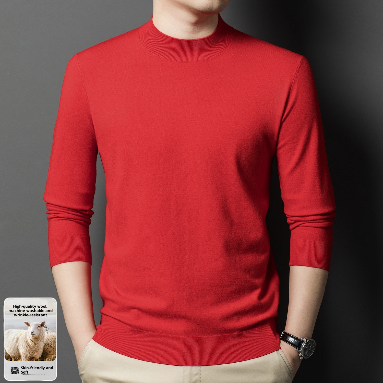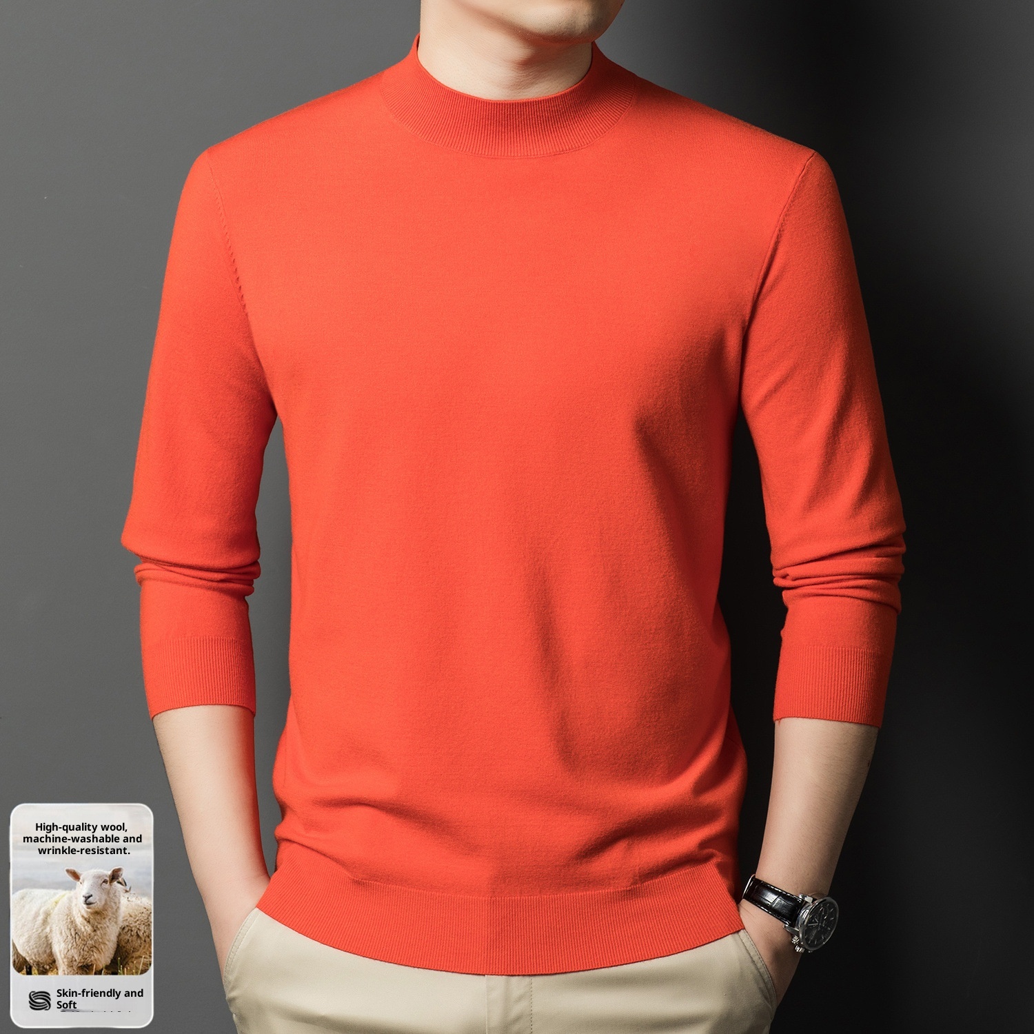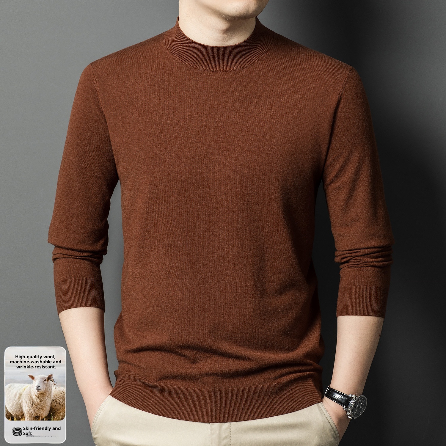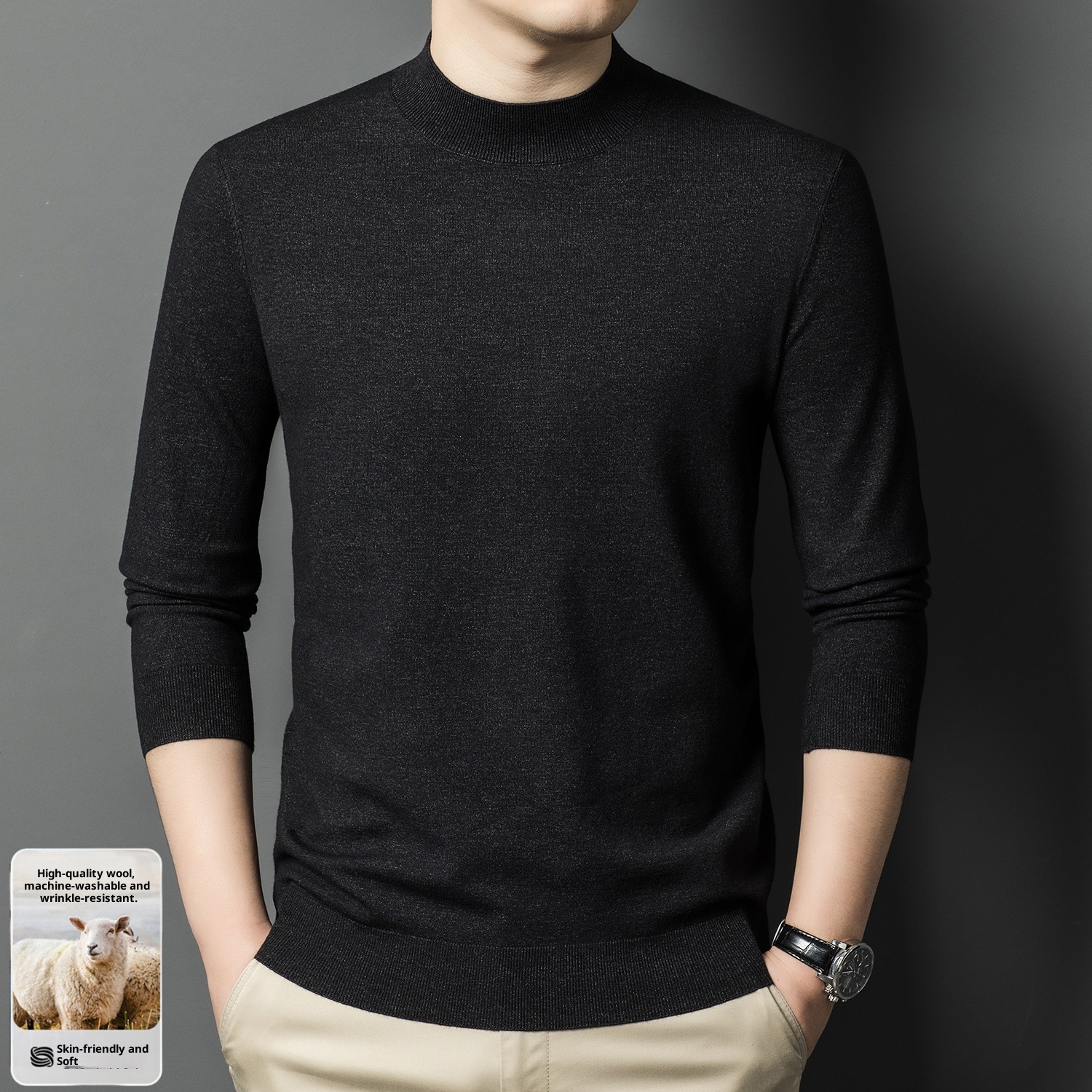 ragazzo Ragazzo Ragazzo Maglia fine a maniche lunghe in lana da uomo, ispessita e calda per autunno e inverno, mezza dolcevita, camicia di base in tinta unita, interno