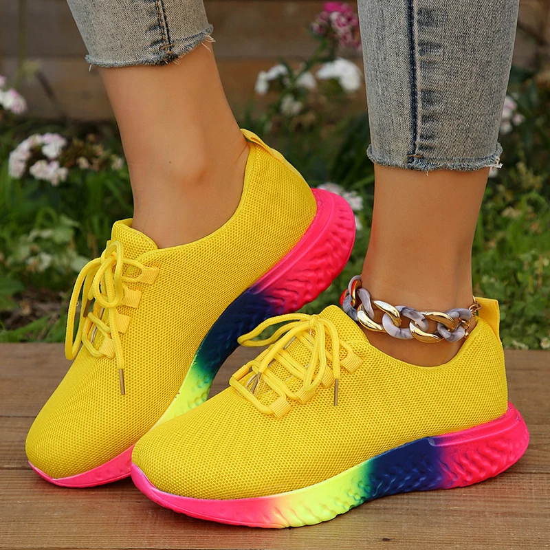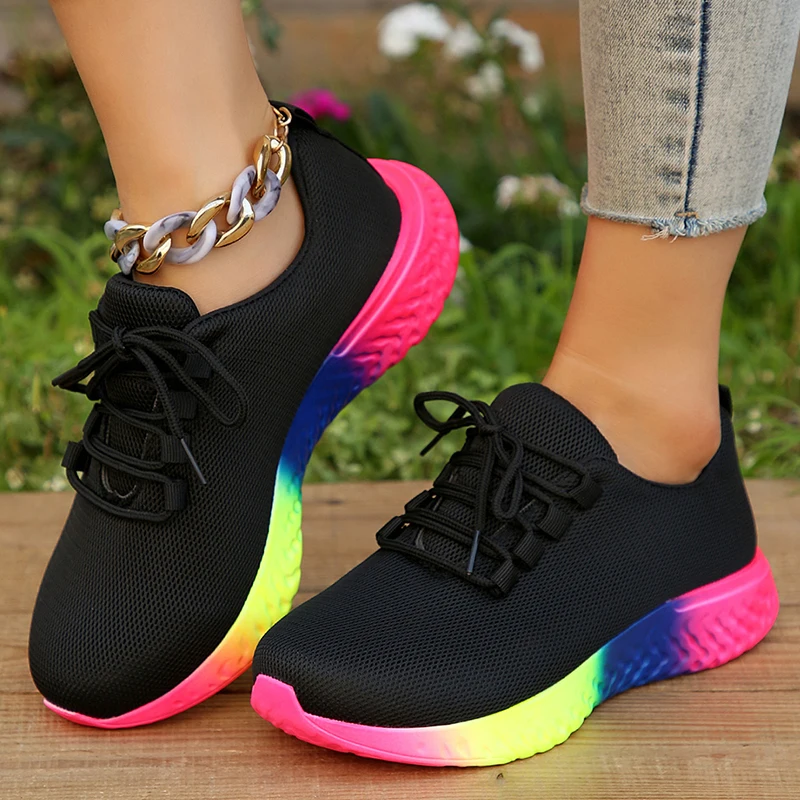 Suola arcobaleno Si intrufola Donna Plus Size 43 Mesh Traspirante Piattaforma Sport Donna Scarpe da tennis stringate antiscivolo Zapatos