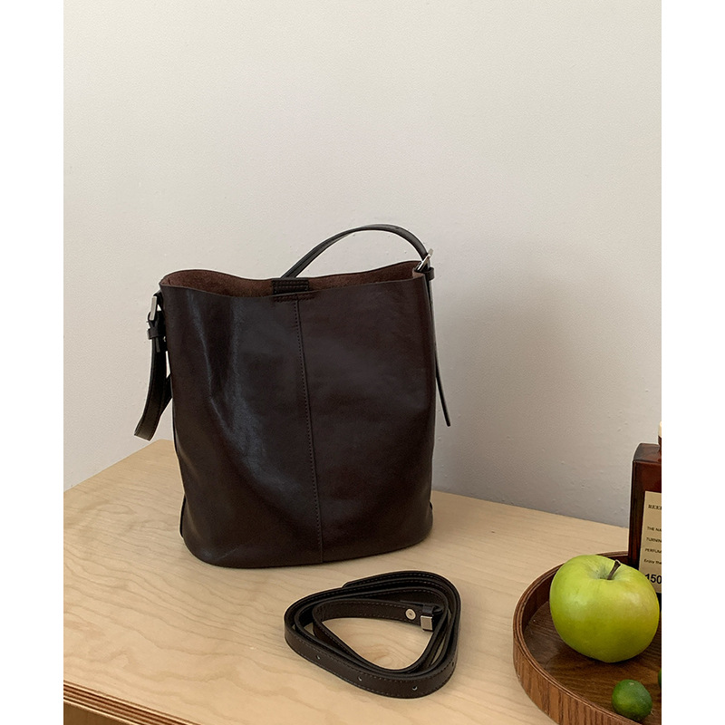 【 Real leather women's bag 】 Fashionable light luxury vegetable tanned cowhide single shoulder bucket bag, high-end sensory and functional tote bag