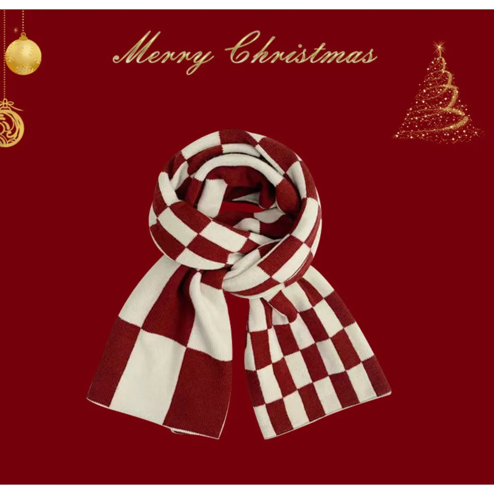 Regalo di Capodanno: sciarpa scozzese con nappe rosse natalizie, sensazione invernale di alta qualità per le donne, caldo scialle coreano, sciarpa spessa