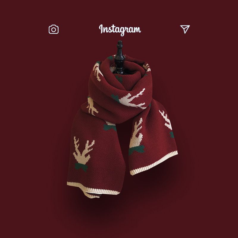 Christmas Gift Red Deer Scarf Women Versatile Autumn and Winter Warmth Extension INS Student Cute Skincare Scarf