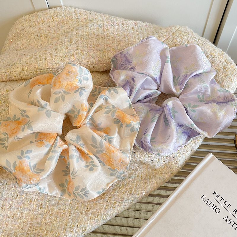 Summer Gentle Floral Print Scrunchie for Women, High-End Small Floral Ponytail Hair Tie, New Fresh Elastic Hair Accessory
