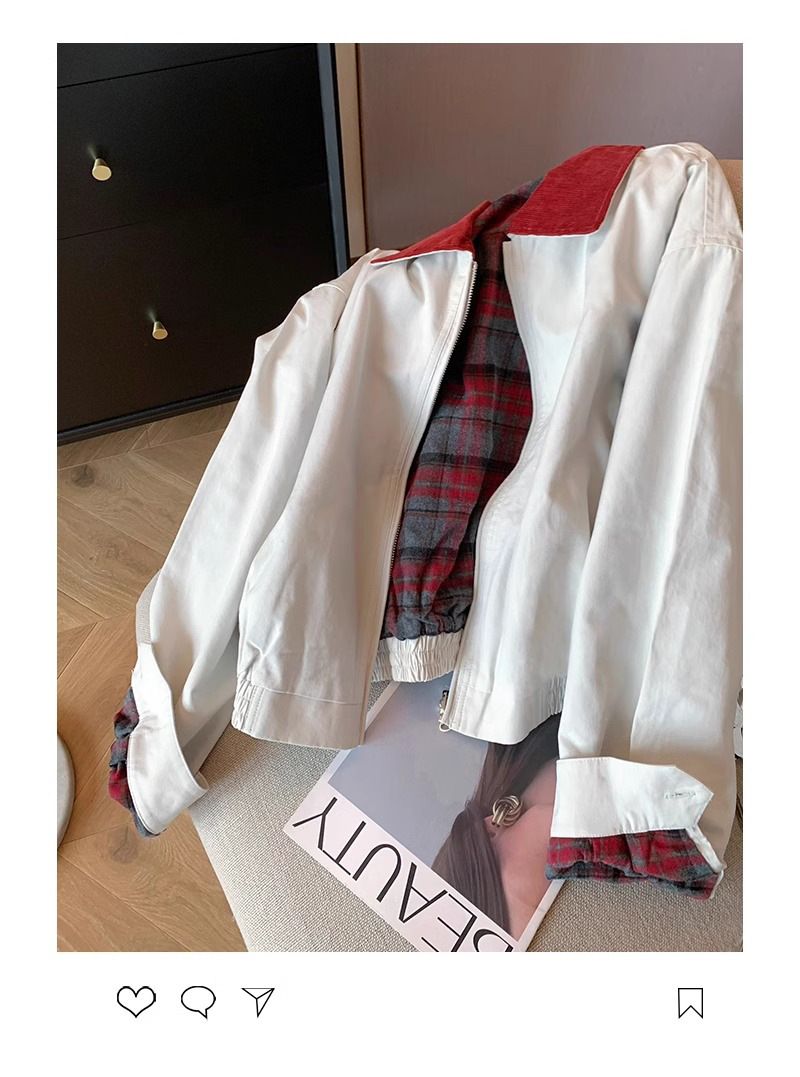 Giacca corta da uomo in stile americano con colletto rovesciato, patchwork e motivo scozzese, unisex, RL Raff Pony Label