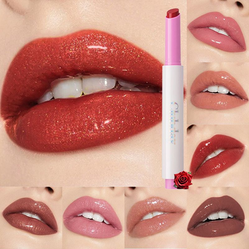 Rossetto lucido a specchio, balsamo labbra idratante a lunga durata, lucidalabbra solido glitterato, tinta labbra antiaderente in tazza sexy rosso-marrone
