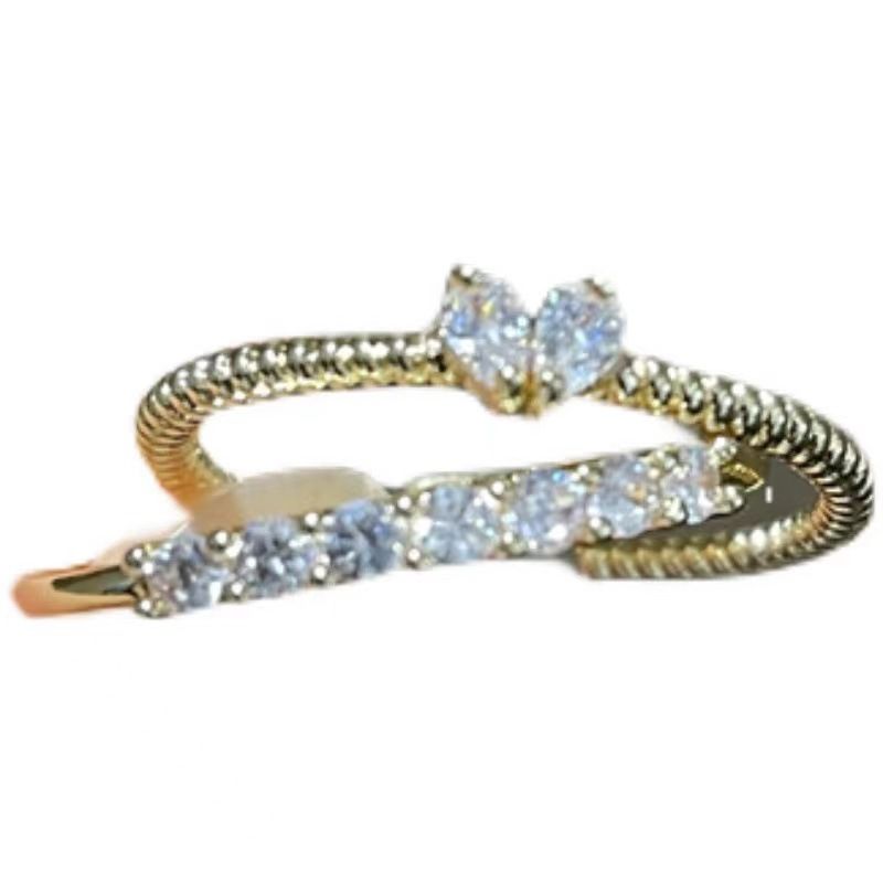 S Argento Diamanti Oro 14K Amore Aperto per Donna Instagram Luce Lusso Squisito Dito Indice Moda Piccolo e Popolare