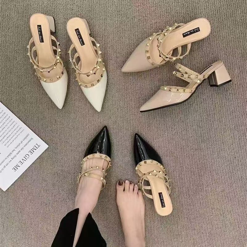 Sandali alti con borchie e punta a punta, nuovi design, eleganti sandali con tacco sottile e punta chiusa