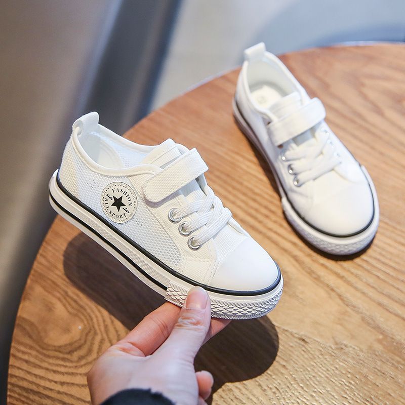 2024 Summer New Boys' Sandals and Girls' Breathable Hollow Canvas Mesh Shoes Kindergarten Baby Soft Sole Little White Shoes