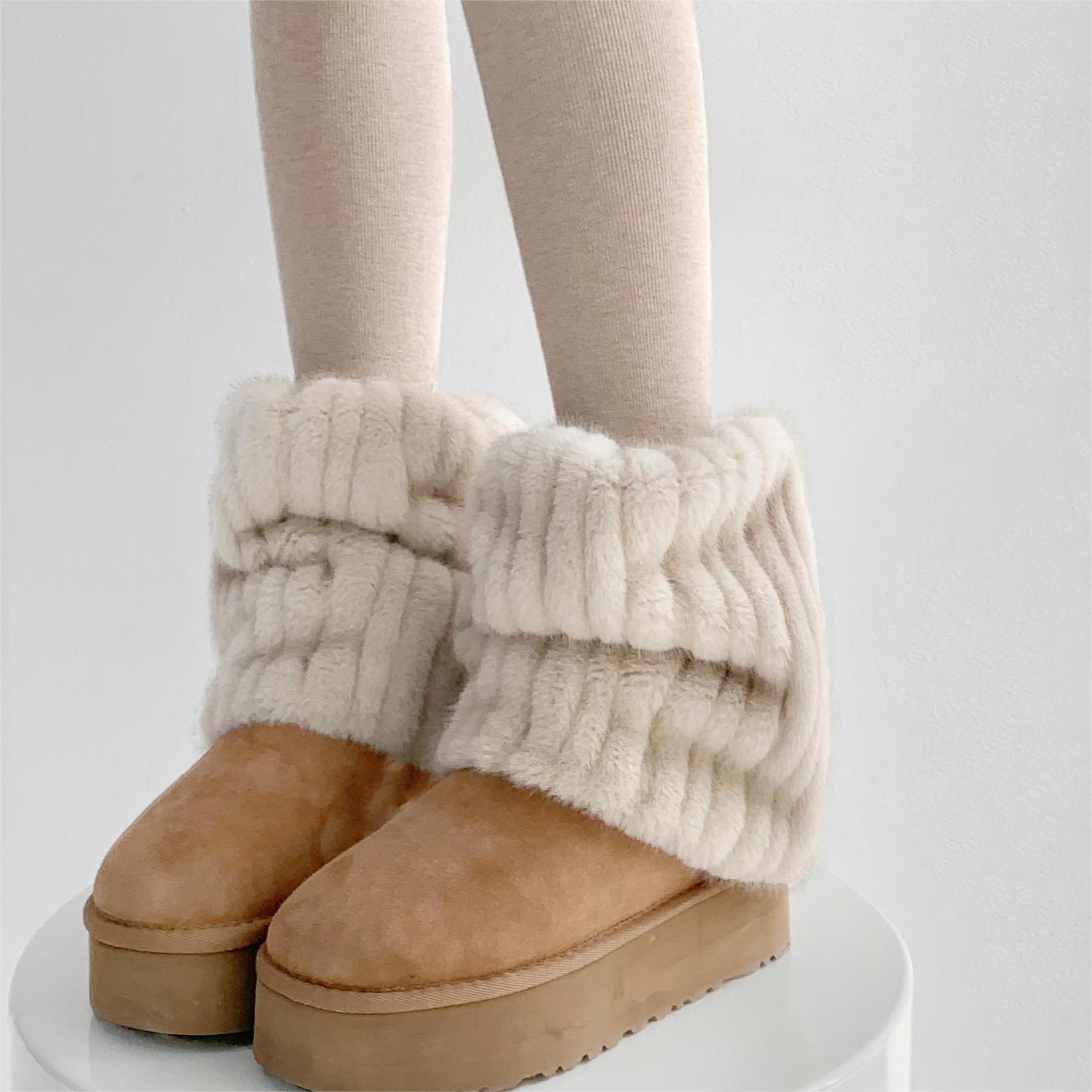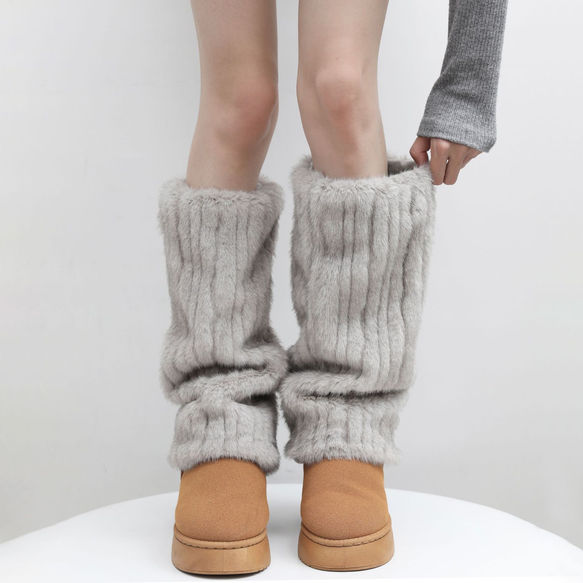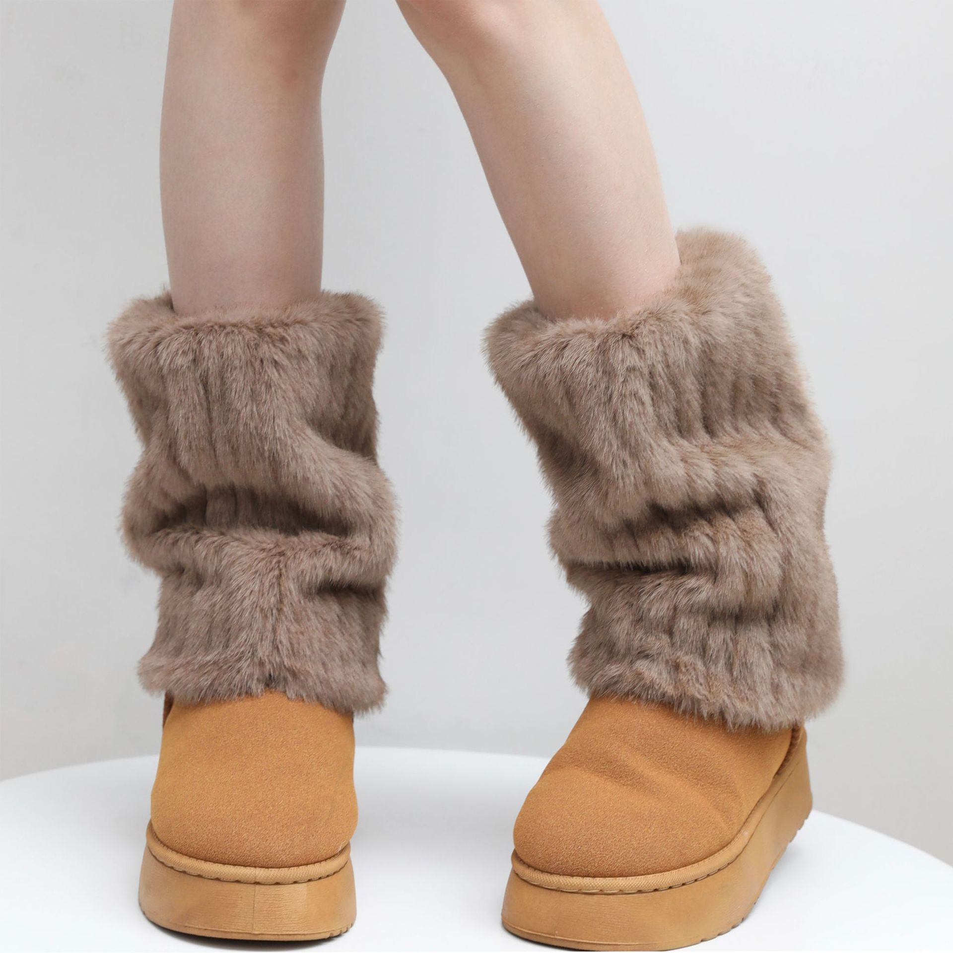 Scaldamuscoli autunnali e invernali per donna, calze spesse e calde, maniche al polpaccio in peluche, stivali da neve in pelliccia di Maillard Y2k