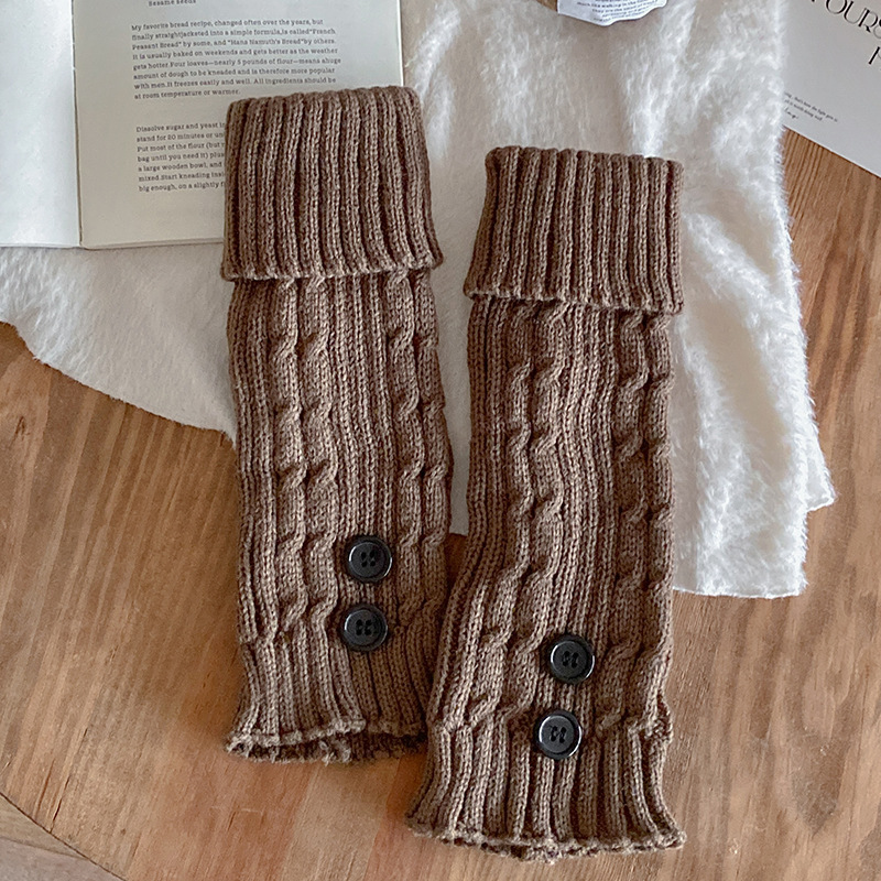 Scaldamuscoli Bootshang, calzini in cotone con risvolto e bottoni, calzini in pile per autunno e inverno, calzini snellenti in lana Maillard a tubo medio, color caffè