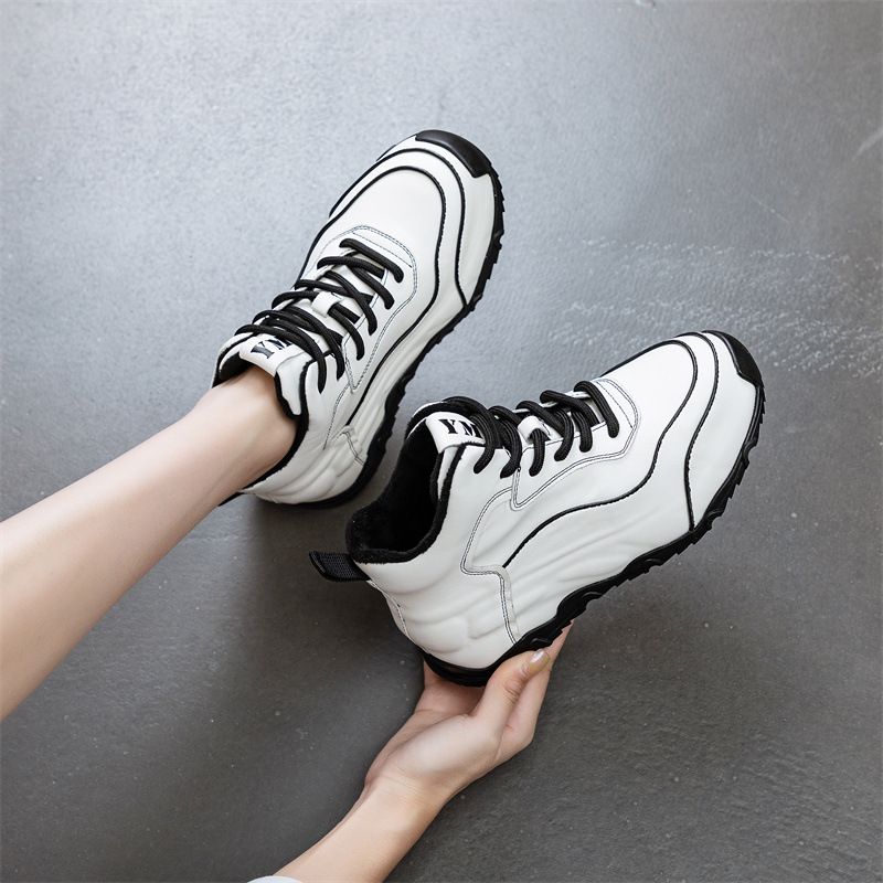 Scarpe alte con lacci e punta rotonda da donna in cotone bianco casual con suola spessa da papà CCVV 2022, versione coreana