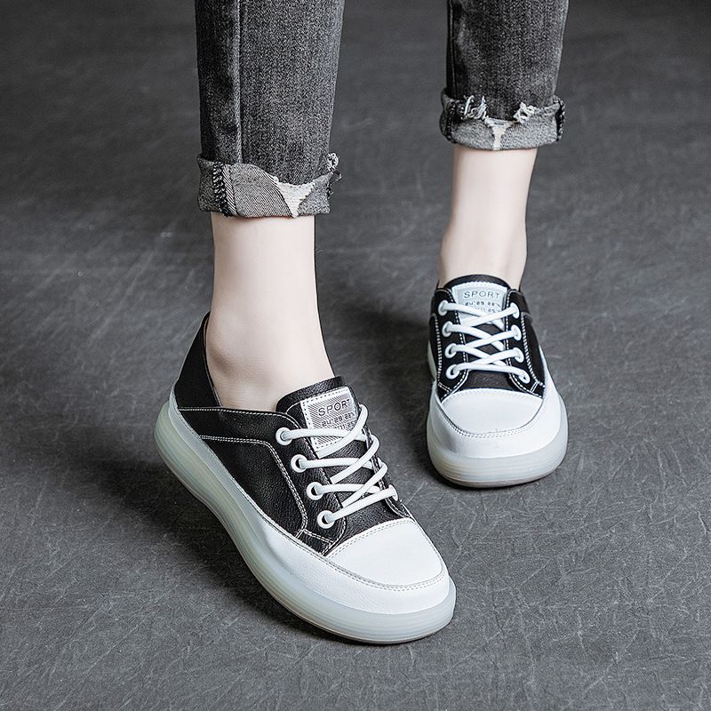 2025 New Spring Summer Autumn Height Increasing Top Layer Cowhide Women's Round Toe Soft Sole Low Top Shoes Versatile Sneakers