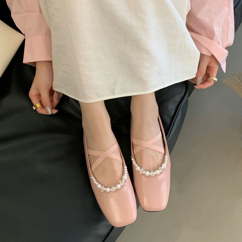 Sheepskin Pearl Mary Jane Flats Cross-Strap Low-Cut Flat Shoes Leather Shoes 2025 Fall/Winter New