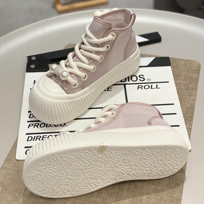 Thick-soled high-top casual women's shoes 2025 new style Round-toe lace-up canvas shoes