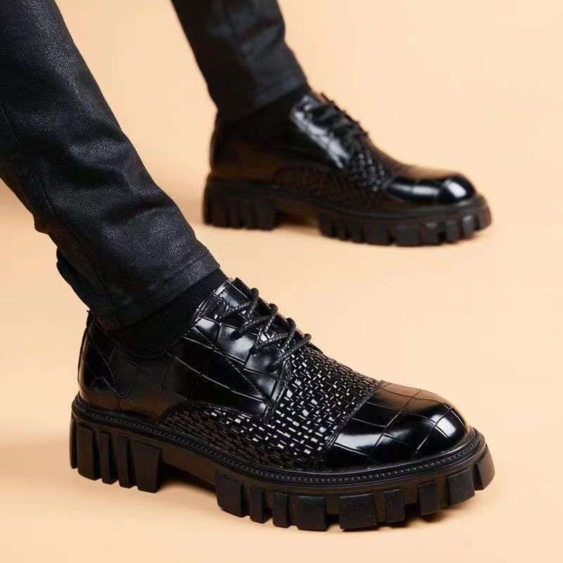 Hair Stylist Platform Summer Breathable Leather Shoes for Men Genuine Leather Korean Style Business Casual Height Increasing Hollow Thick Sole Men's Shoes