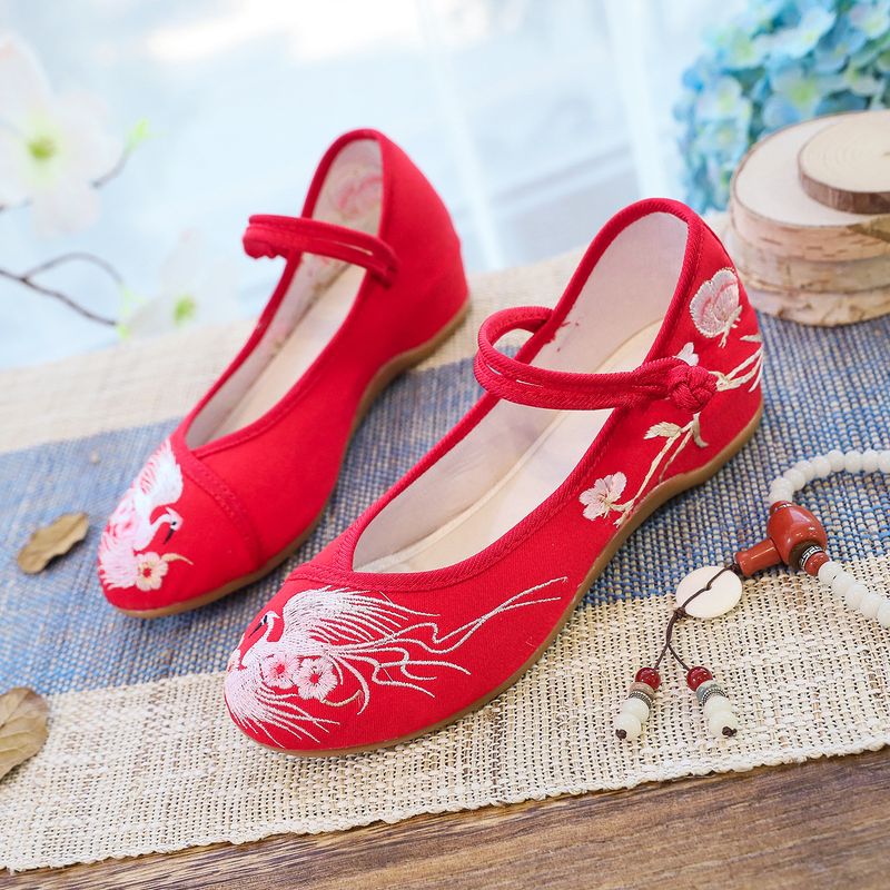 Scarpe da ballo da donna in stile etnico con fibbia a piastra, in tessuto ricamato, con suola in tendine di mucca e tacco basso, primavera e autunno