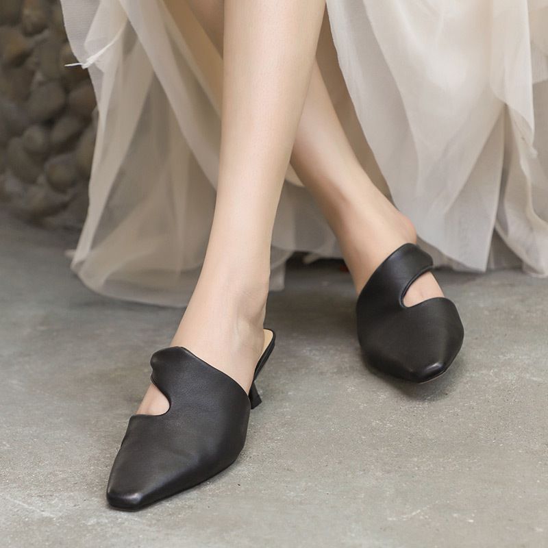 Scarpe da donna in pelle di pecora con punta a punta e tacco medio, per primavera ed estate, eleganti e di alta qualità, in vera pelle, con punta chiusa.