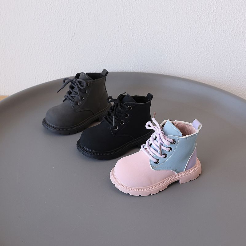 Scarpe da esterno impermeabili per bambine e bambini, in pelle, stile coreano, modello Martin, alla moda, primaverili e autunnali
