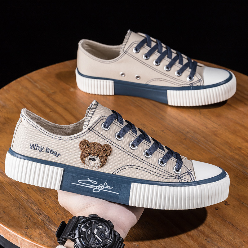 Little Bear Cartoon Canvas Shoes Low Top Youth Student Men's Shoes 2024 New Trend Versatile Soft Sole Breathable Board Shoes