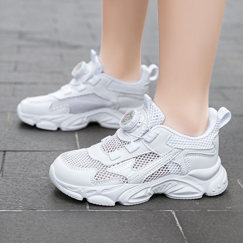 Elementary school children's white shoes, single net girls' white sports shoes, spring and summer boys' campus white shoes, button sports shoes