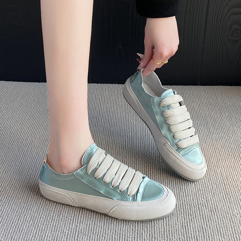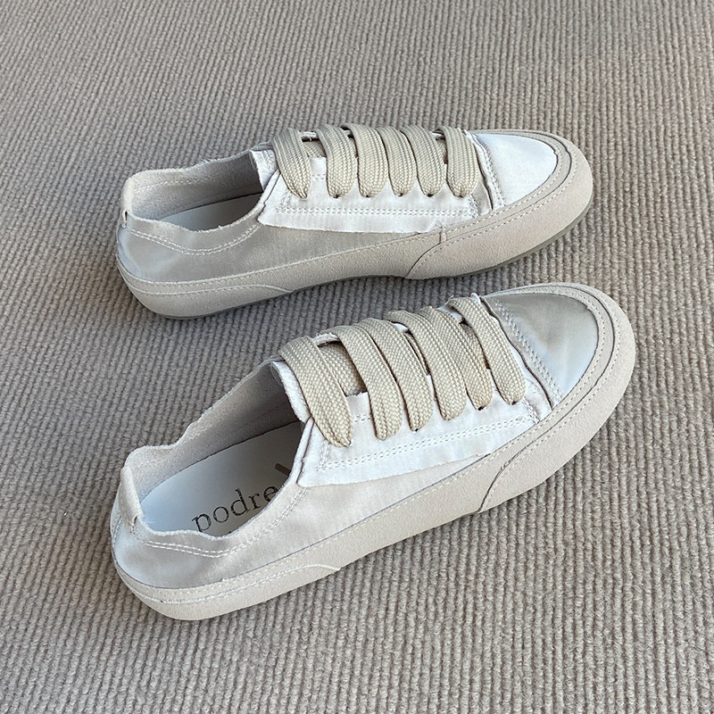 Scarpe da ginnastica bianche piatte e versatili per donna, scarpe da ginnastica estive sottili, scarpe singole con suola spessa, scarpe in tela di raso di seta