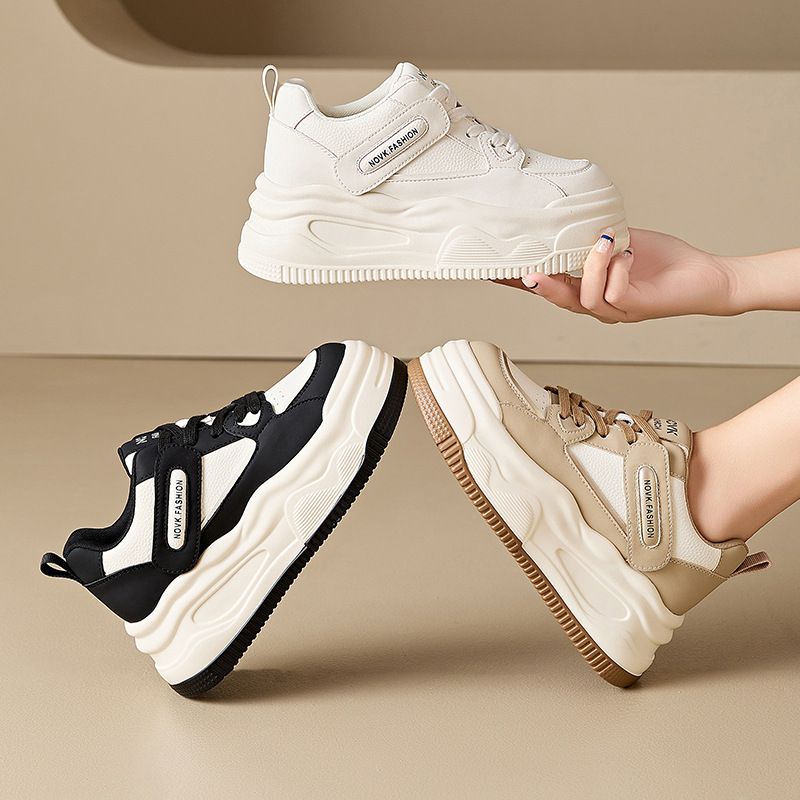 Scarpe da ginnastica casual bianche con suola spessa e rialzo per donna, autunno inverno 2024, di alta qualità