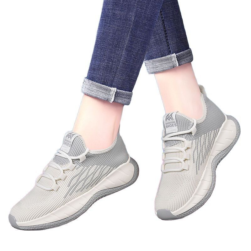 2024 Summer New Women's Shoes Flyknit Lace-up Comfortable Casual Shoes Breathable Mesh Shoes Lightweight Soft Sole Sneakers