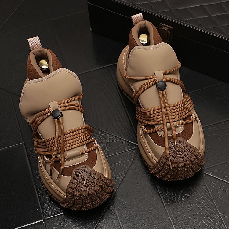 Cowhide Dad Shoes Men's Autumn and Winter Foot Set Casual Shoes Versatile Leather Thick soled Men's Shoes Mid Trendy Men's Shoes