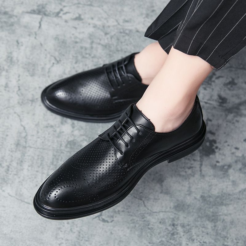 Men's Brogue Leather Shoes British Fashion Business Casual Trendy Shoes Summer Breathable Black Men's Shoes Korean Style