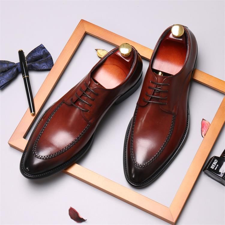 Formal Low-top Shoes Lace-up Single Shoes Trendy European Style Pointed Leather Shoes Men's Business Leather Shoes Men's Shoes