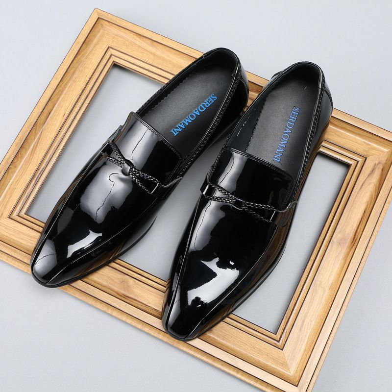 Scarpe da uomo in stile europeo, formali, basse, con punta a punta, in pelle verniciata, traspiranti