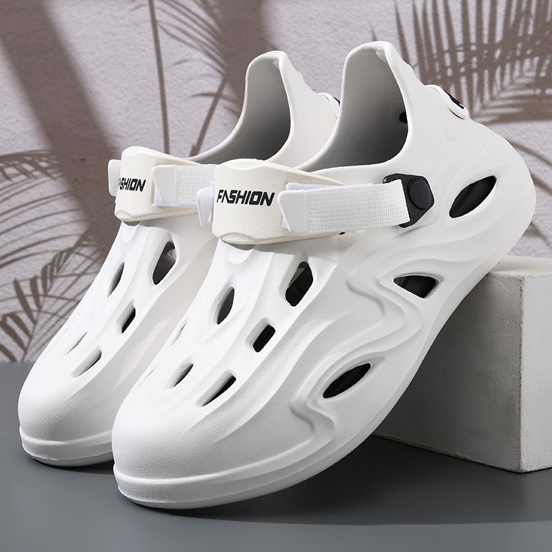 Men's summer hole shoes with thick soles, wearing cool slippers with a poop like feel on the beach, anti slip at home, leisure, and odor proof slippers for women