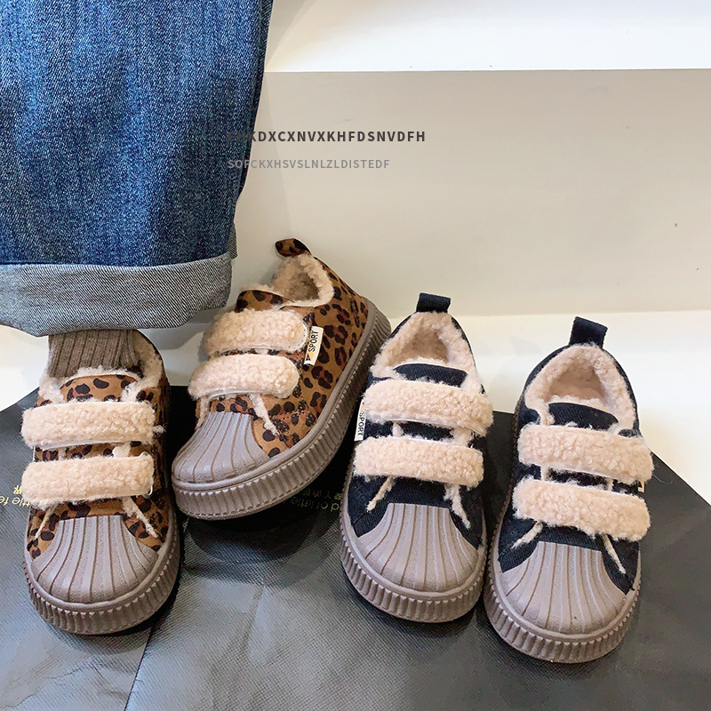 Scarpe per bambini con testa di conchiglia, scarpe in cotone per bambini con stampa leopardata per bambini, autunno e inverno da donna 2023, ragazze
