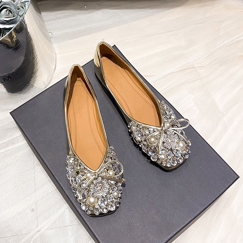 Scarpe singole con suola morbida Fairy Wind 2025, nuove scarpe da sposa piatte con strass, nell'ambito dell'aumento delle taglie della moda femminile Cento e uno_voghion.com
