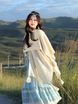 Forest series solid color versatile knitting shawl with women traveling in Xizang grassland