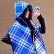 Sciarpa con cappuccio e mantello caldo a doppio uso in lana a quadri blu di Ji Hyun-Kyung Equestrian Klein