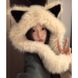 Plush fur thickened fox ear hat scarf one-piece women's 2024 autumn and winter warm face small Lei Feng hat