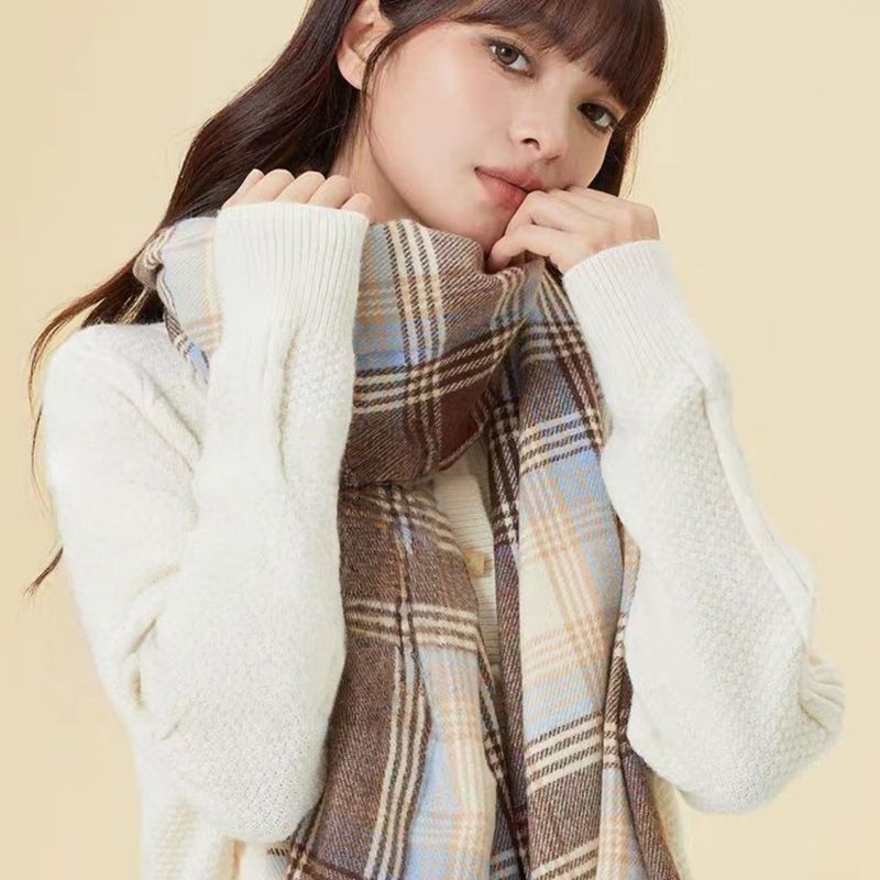 Sciarpa da donna coreana in stile invernale, calda, carina, versatile, stile college, sciarpa scozzese