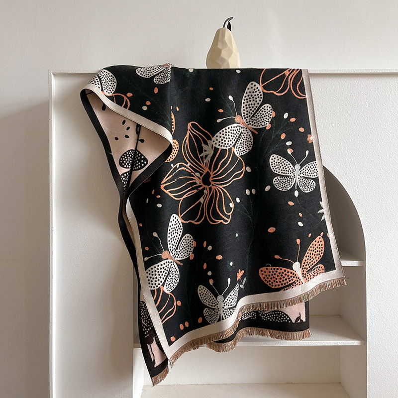 New Winter Wool Scarf Women's Butterfly Flower Fashion Design Versatile Neck Thickened and Warm Cashmere Shawl