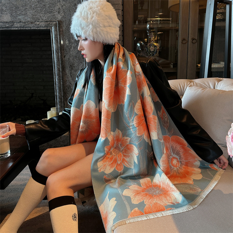 Autumn and Winter Mom's Elegant Lotus Imitation Cashmere Scarf Women's Thickened and Warm Cycling Windproof Neck Gift