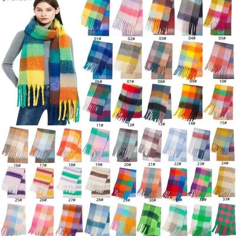 Sciarpa invernale da donna con doppio arcobaleno a quadri, scialle lungo con pelo di cavalluccio marino, collo a contrasto, da uomo, con le stesse frange