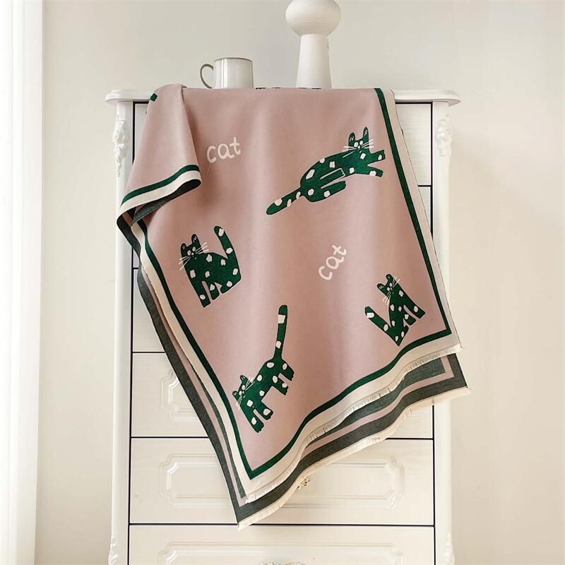 Sciarpa invernale in imitazione cashmere, scialle da donna con gatto a doppia faccia, sciarpa calda, lunga, dolce e carina con nappe e doppio uso