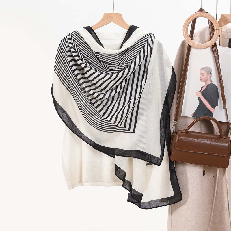 Spring and Autumn Simple Striped Women's Printed Scarf Versatile Cotton Linen Feel Printed Long Shawl Summer Sunscreen Scarf Hot Sale