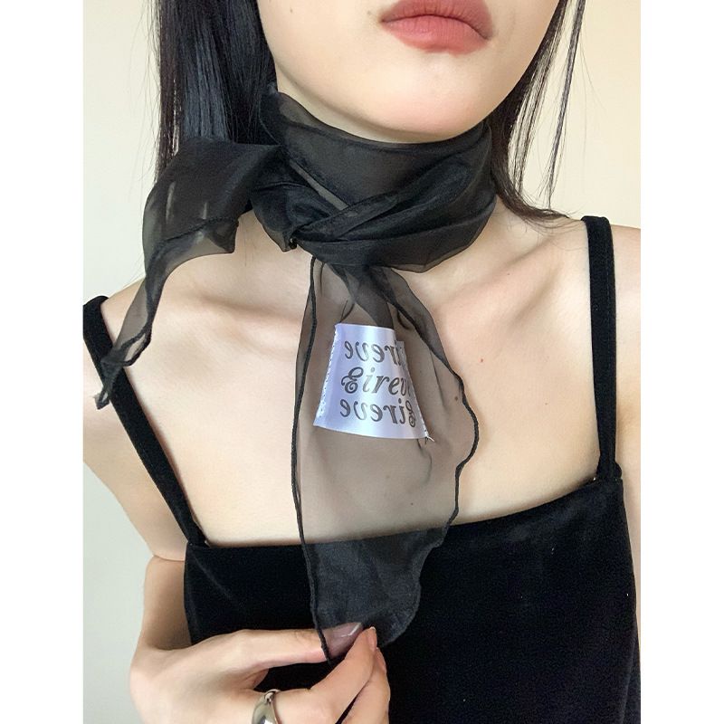 Korean style atmosphere thin semi transparent small scarf women's summer new fashion headband accessories long neck scarf