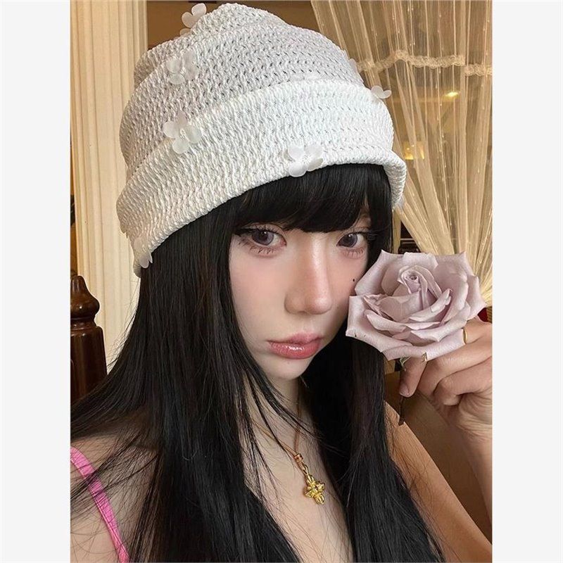 High-end Floral Hollow White Turban Hat for Women 2025 Spring New Cold Hat Large Head Circumference Thin Breathable Hat