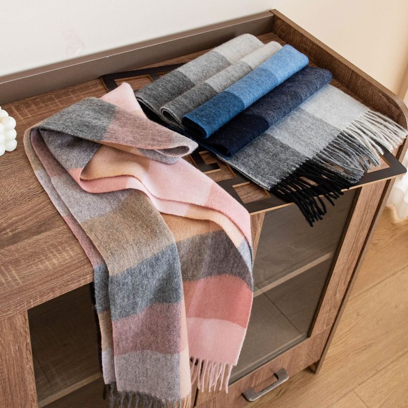 Thickened Autumn Winter Plaid 100% Wool Scarf Atmosphere Women Versatile Warm Wool Scarf Comfortable Shawl