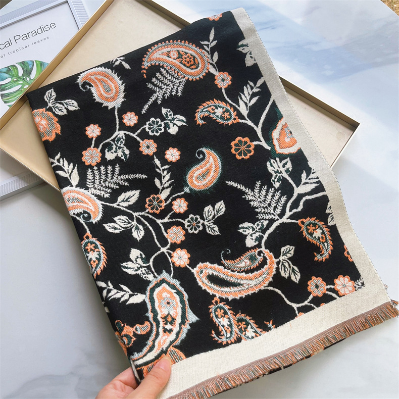 Scarf Women's versatile autumn and winter long neckband imitation cashmere cashew flower shawl Women's scarf