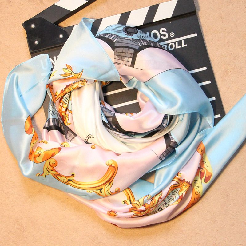 Japanese and Korean fashion simulation silk scarves, new silk satin digital printed silk scarves, large square scarves, women's spring scarves