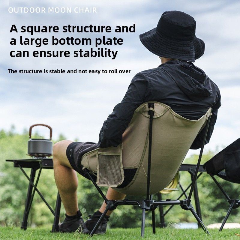 Outdoor Foldable Moon Chair Camping Picnic Backrest Chair Self-Driving BBQ Portable Chair High-Low Dual-Use Leisure Chair